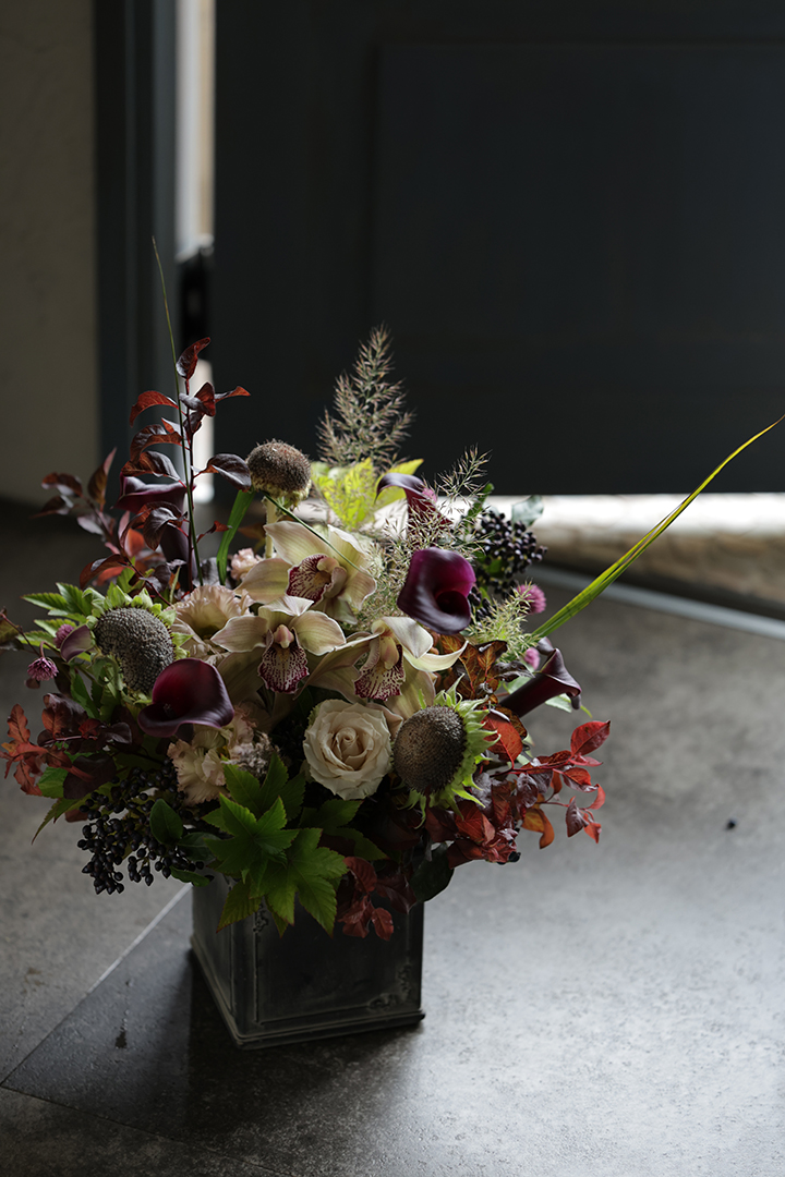 シックな色みのアレンジメントに。