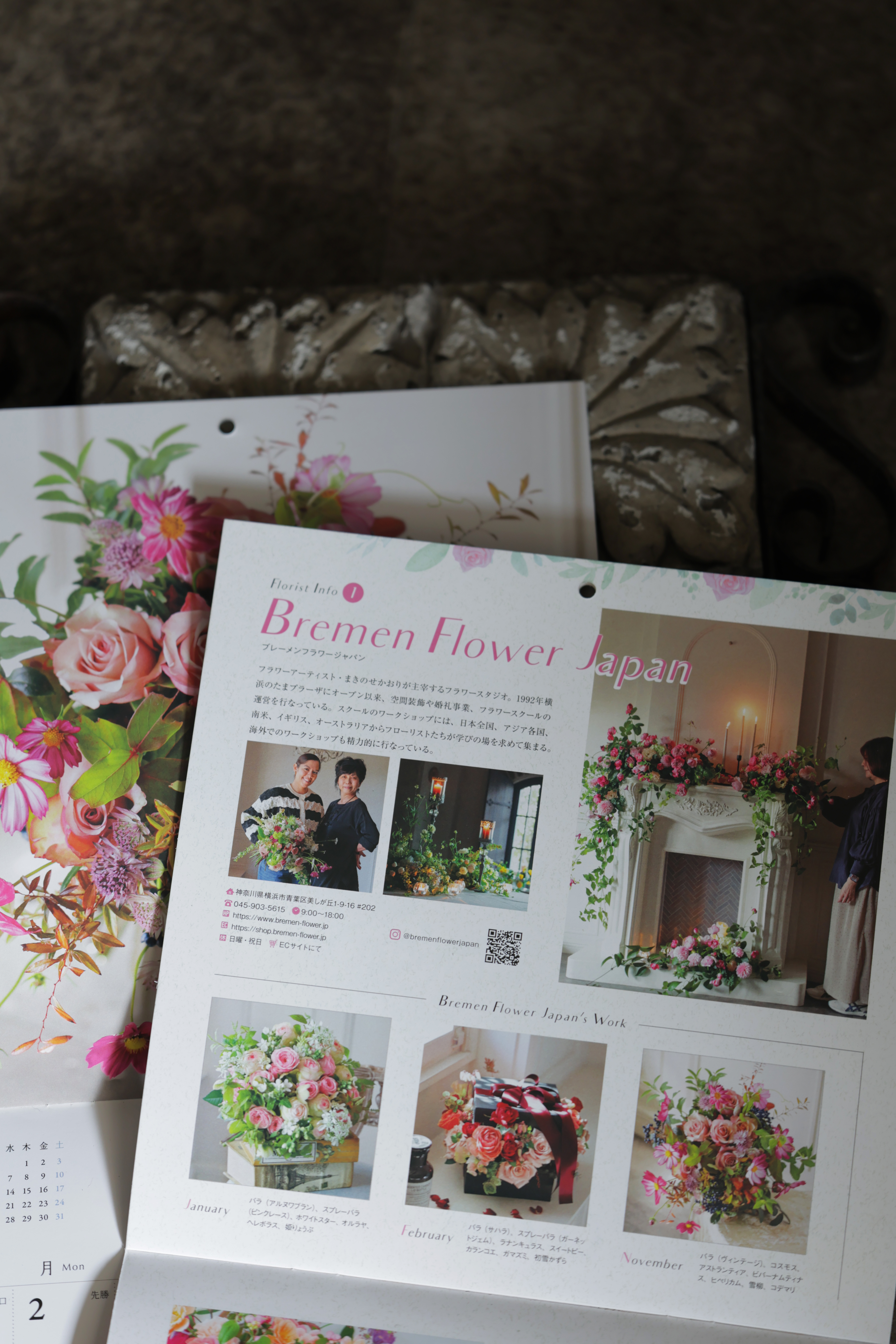 株)インプレス発行のカレンダー 『Petit Rose 2026 可愛いお花屋さんの小さなカレンダー』にBremen Flowerのブーケやアレンジメントを掲載していただきました。